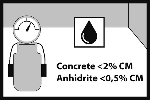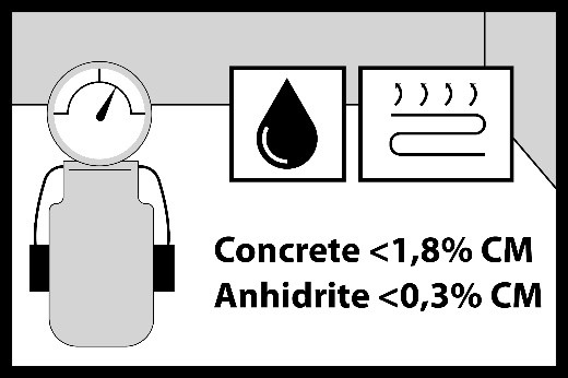 L’humidité de la chape doit être au maximum de 1,8 % pour une chape ciment et 0,3 % pour une chape anhydrite. Les mesures doivent être effectuées selon la méthode au carbure (CM).