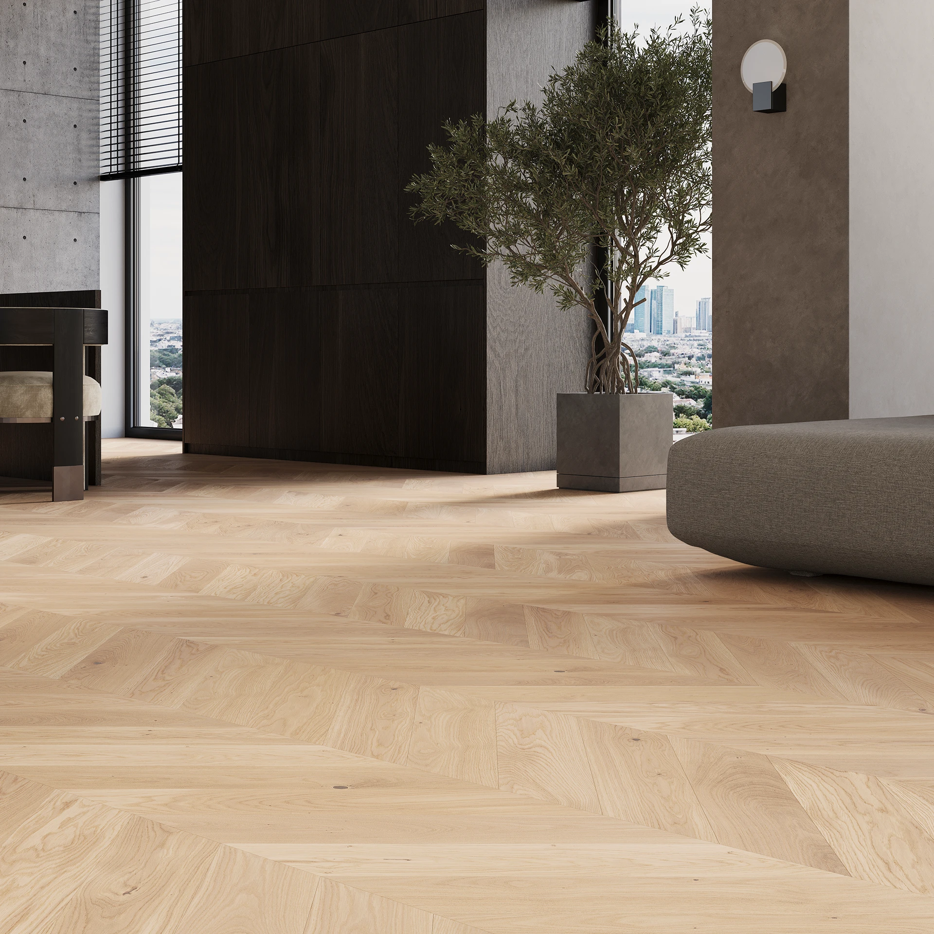Parquet en chêne d’une délicate couleur blanche. La microfibre sur 4 côtés la rend fine et délicate, et le traitement de brossage souligne également le motif de grain unique. Recouvert d’huile naturelle.