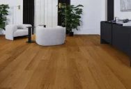 Parquet en chêne naturel avec des caractéristiques du bois subtilement mises en valeur. La surface brossée accentue magnifiquement le dessin des veines, donnant au parquet un caractère authentique et une apparence noble.